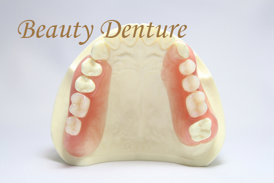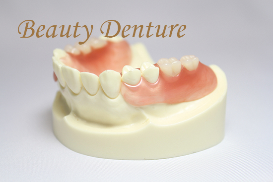 ビューティーデンチャー(ノンクラスプデンチャー)とは・・・・・ 義歯を残存歯に固定するクラスプ(金属バネ)がないので、入れ歯をしていることが気づかれにくく見た目がきれいなので、審美性も求めている患者さんの評判が良く、大変喜ばれています。 ・金属バネがないので、入れ歯だと気づかれにくい。 ・食べかすが詰まりにくく、絡まりにくい。 ・薄く、軽く、弾力があるため、装着感が良い。 ・金属未使用により、金属アレルギーの心配がない 等の特徴を有しています。 是非、ご相談ください。 |